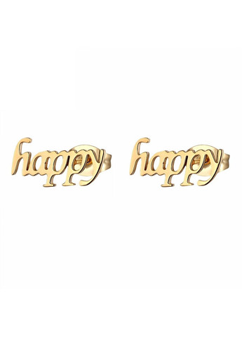 Сережки гвоздики виготовлені з нержавіючої медичної сталі. Покриті жовтою позолотою. Натуральний колір сталі - сріблястий, а покриття на цьому матеріалі тримається дуже добре. Медична сталь не темніє, не окисляється і не визиває алергічної реакції на тілі. Зроблені у вигляді слова "happy".