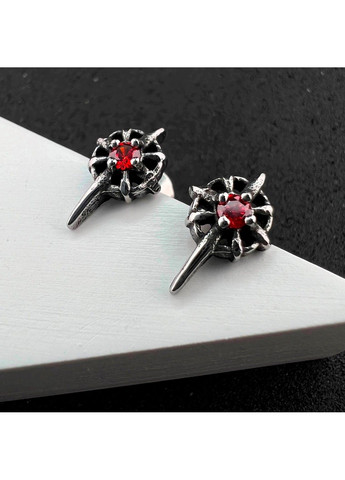 Готичні сережки гвоздики виготовлені з нержавіючої медичної сталі. Натуральний колір сталі - сріблястий. Медична сталь не темніє, не окисляється і не визиває алергічної реакції на тілі. Прикрашені червоними камінцями.