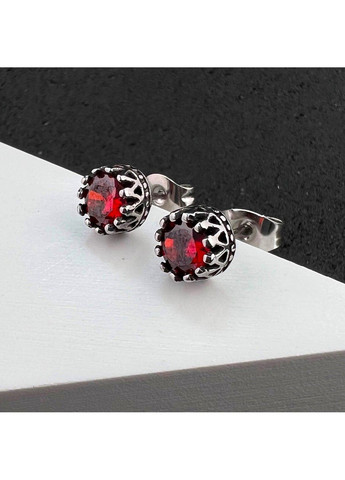 Готичні сережки гвоздики виготовлені з нержавіючої медичної сталі. Натуральний колір сталі - сріблястий. Медична сталь не темніє, не окисляється і не визиває алергічної реакції на тілі. Прикрашені великими круглими червоними камінцями.