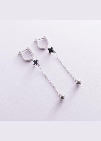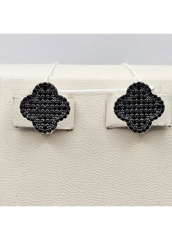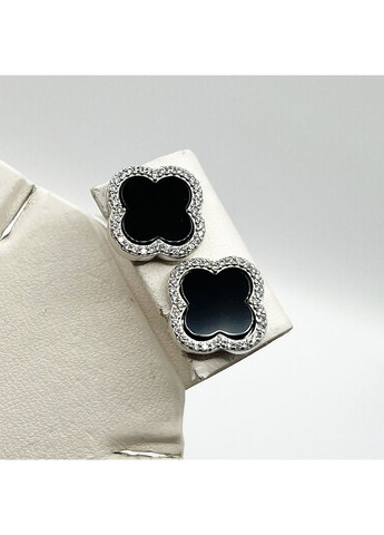 Срібні сережки "Конюшина" з оніксом Метал: срібло 925" Вставка: онікс – 0.4 г Середня вага: 3.20 г Ювелірні прикраси обміну і поверненню не підлягають