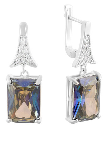 Сережки 925 проби з топазом 24.12ct. Вага прикраси 9,9г. Фізичний розмір виробу (висота * ширина): 30х10мм. Країна походження: Індія. Склад: срібло 925/вставка: містиктопаз 24.12ct, кубічний цирконій. Вид покриття: родій.