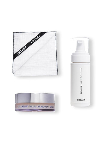 Набір для видалення макіяжу, що стане невід'ємною частиною вашого щоденного ритуалу догляду за шкірою. Бальзам на основі мигдальної олії та ефірів ши має консистенцію, що нагадує чисту олію ши та легко тане на сухій шкірі обличчя, очей і губ. Розчиняє залишки декоративної косметики та очищує пори від надлишків шкірного себуму. При контакті з водою перетворюється на ніжне молочко. Легко змивається, не залишаючи жирної плівки. Очищуюча пінка для сухої та чутливої шкіри зі скваланом та олією авокадо відновлює ліпідний бар’єр та не шкодить мікробіому шкіри, делікатно та м’яко розчиняє та видаляє навіть найстійкіший макіяж, надає шкірі обличчя приємного відтінку та вирівнює тон. А муслінова серветка для очищення обличчя допоможе якісно і ретельно провести процедуру очищення шкіри. До набору входять: Спосіб застосування: Нанесіть очищувальний бальзам пальцями на сухе обличчя, зокрема губи й очі. Злегка помасажуйте, потім додайте трохи води й знову м'яко помасажуйте, щоб олія перетворилася на молочну емульсію. Вмийте обличчя за допомогою муслінової серветки: Добре змочіть серветку. Обережними рухами по масажних лініях від центра до периферії протріть обличчя. Повторіть процедуру декілька раз. Не розтягуйте шкіру. Після очищення шкіри бальзамом використовуйте для вмивання невелику кількість очищуючої пінки. Нанесіть її на вологе обличчя легкими масажними рухами. Вмийте обличчя за допомогою муслінової серветки: Речовин сполосніть серветку. Обережними рухами по масажних лініях від центра до периферії протріть обличчя. Повторіть процедуру декілька раз. Не розтягуйте шкіру.