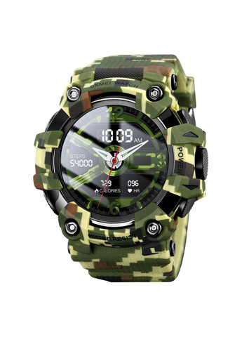 Тип механізму: Кварцовий; Тип ремінця: Ремінець; Бренд: Skmei; Стать: Чоловічі; Підсвічування: Електролюмінесцентне; Функції: Будильник, Фітнес-трекер, Календар, Підтримка Bluetooth,Таймер, Контроль якості сну, GPS-маркер розташування, Телефонна книжка, Hand Shift, Пульсометр, Лічильник калорій, Секундомір, Шагомер; Стиль: Спортивний, Армійський, Сasual; Скло: полімерне; Ширина: 22; Форма корпусу: Кругла; Країна виробника: Китай; Матеріал ремінця: Силікон; Матеріал: Полімер; Водонепроникність: 50 м; Вага, м: 83; Розміри, мм: 60 х 56; Колір: Камуфляж; Індикація: Годинник, Хвилини, Секунди, День тижня, Місяць, Число, Погода, Рівень заряду акумулятора; Тип циферблату: Стрілечно-електронний; Гарантія: 12 місяців; Вид циферблату: Арабська цифра; Браслет / Ремінець: Ремінець; Колір ремінця: Камуфляж; Довжина ремінця, см: 27;