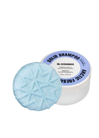 Твердий шампунь проти лупи з ментолом Arctic Fresh Mr. Scrubber Solid Shampoo Bar 100 г Добре піниться, ретельно очищає волосся до скрипу. Ментолове масло пом'якшує, надає волоссю блиск і силу, полегшує укладання. Засіб розігріває шкіру голови та прискорює кровообіг, стимулює зростання здорового, красивого волосся. Завдяки зручному формату тверді шампуні легко помістяться у будь-яку валізу. Також, ментолове масло знімає запалення і свербіж шкіри, позбавляє від лупи, регулює жировий обмін, запобігає швидкому забрудненню волосся. Гліцерин захищає та допомагає надовго утримати вологу всередині волосся. А вітамін Е активізує обмінні процеси в шкірі голови, покращує харчування волосяних цибулин та запобігає їх передчасному випаданню. Особливості: свіже, шовковисте волосся; надання об'єму і блиску; усунення лупи. Застосування. Спінити засіб на вологому волоссі масажними рухами кілька хвилин. При необхідності повторити процедуру. Вага: 100 г