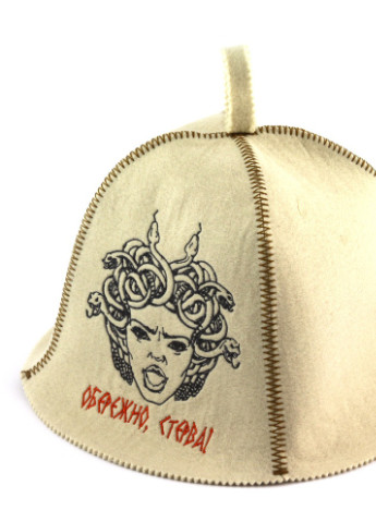 Банна шапка незамінний аксесуар при відвідуванні лазні і сауни. Крім оригінального зовнішнього вигляду або веселого слогану вишитого на ній шапка виконує дуже важливу роль - вона береже нашу голову від перегріву. Ми рекомендуємо підходити до вибору шапки для лазні та сауни не менш відповідально, ніж при виборі іншого головного убору. Якщо ви відвідуєте лазню або сауну регулярно і любите паритися при високій температурі і вологості, то ми рекомендуємо придбати шапки розроблені і пошиті нашої компанії. Банна шапка з вишивкою виготовлена з натурального войлока, у складі якого овеча вовна. Колір білий. Модель має всередині петельку, яка дозволяє повісити шапку на гачок . Даний матеріал має стійкий колір, який не линяє і не вигоряє. Догляд за виробом: У пральній машинці вироби з фетру потрібно прати в режимі для вовни, можна віджимати в делікатному режимі віджимання. Температура води не повинна перевищувати 40 градусів, особливо якщо вироби кольорові. Сушити потрібно виріб в розгорнутому вигляді.