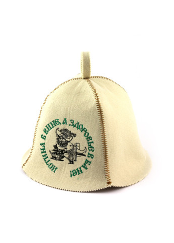 Шапка виготовлена з натуральної повсті - ідеального матеріалу для банних процедур. Він має низьку теплопровідність (не нагрівається навіть при високих температурах), вологостійкий, легко чиститься.