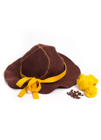 Банна шапка Леді виготовлена з натуральної повсті, у складі якої овеча шерсть. Колір коричневий