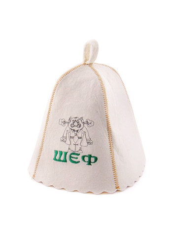 Банна шапка з вишивкою виготовлена з натурального войлока, у складі якого овеча вовна. Колір білий.