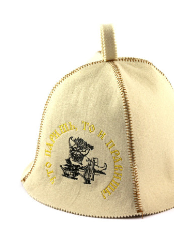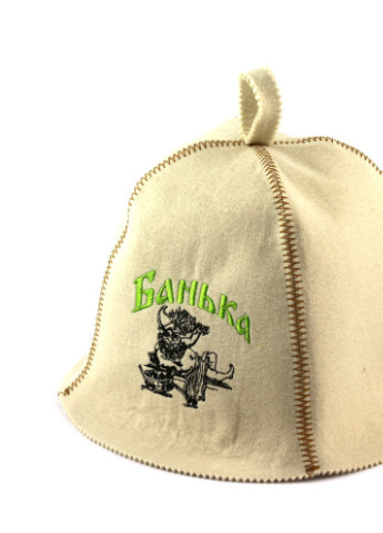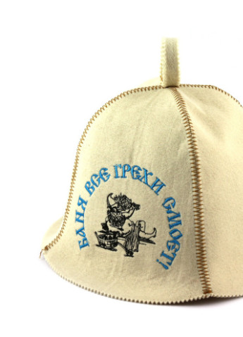 Банна шапка незамінний аксесуар при відвідуванні лазні і сауни. Крім оригінального зовнішнього вигляду або веселого слогану вишитого на ній шапка виконує дуже важливу роль - вона береже нашу голову від перегріву. Ми рекомендуємо підходити до вибору шапки для лазні та сауни не менш відповідально, ніж при виборі іншого головного убору. Якщо ви відвідуєте лазню або сауну регулярно і любите паритися при високій температурі і вологості, то ми рекомендуємо придбати шапки розроблені і пошиті нашої компанії. Банна шапка з вишивкою виготовлена з натурального войлока, у складі якого овеча вовна. Колір білий. Модель має всередині петельку, яка дозволяє повісити шапку на гачок . Даний матеріал має стійкий колір, який не линяє і не вигоряє. Догляд за виробом: У пральній машинці вироби з фетру потрібно прати в режимі для вовни, можна віджимати в делікатному режимі віджимання. Температура води не повинна перевищувати 40 градусів, особливо якщо вироби кольорові. Сушити потрібно виріб в розгорнутому вигляді.