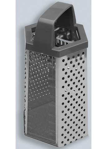 Терка Bollire виготовлена із високоякісної нержавіючої сталі, завдяки чому вона довго залишається гострою. Дзеркальне полірування терки Bollire полегшує догляд за нею. Переваги: Виготовлена із високоякісної нержавіючої сталі. Має 4 робочі поверхні з різними фракціями: дрібна, середня, велика і для шатківниці. Найдрібніша фракція стане в нагоді для натирання картоплі або цедри. Середня та велика фракції використовується для натирання овочів. Шинковка призначена для капусти та нарізки картоплі тонкими кружальцями. особливості: Якісні та екологічно чисті матеріали Ергономічна ручка з нержавіючої сталі Можливість мити в посудомийній машині Розміри: 9 х 6.3 х 21.6 см