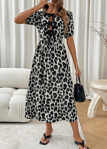 Колір Комбінований / Матеріал Поліестер, Трикотаж / Візерунок Леопардовий / Декор Оборки, Складки / Стиль Коктейльний, Кежуал
