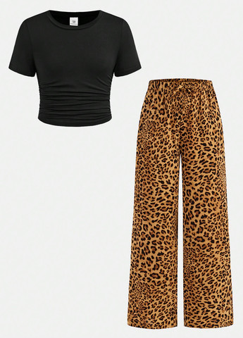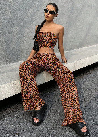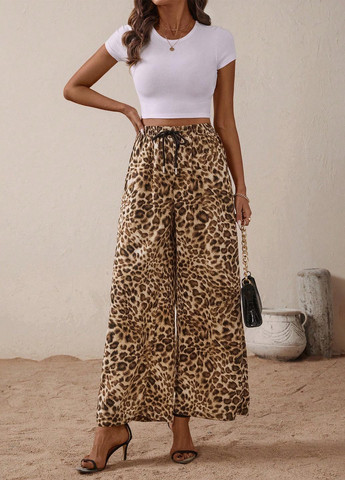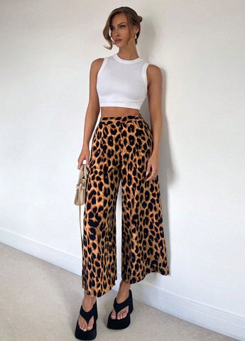 Колір Комбінований / Матеріал Поліестер / Фасон Палаццо / Висота посадки Висока талія / Візерунок Леопардовий