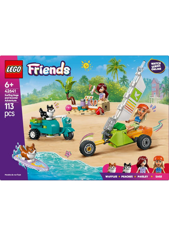 Конструктор LEGO (ЛЕГО) Friends Собачі пригоди на серфі та скутері дозволяє насолоджуватися творчою грою. Вирушайте ловити хвилі! Надихайте дітей вигадувати власні пляжні пригоди. Основні переваги: всі деталі легко з'єднуються та роз'єднуються фарба зберігає свої властивості дуже довгий час – через багато років конструктори LEGO такі ж яскраві та барвисті матеріал не піддається деформації, впливу високих температур або зносу деталі відповідають найсуворішим міжнародним стандартам безпеки та якості конструктор сприяє розвитку дрібної моторики рук та посидючості складання конструктора відмінно підходить для розвитку фантазії та рольових навичок додаток LEGO Builder діти можуть збільшувати та обертати моделі в 3D, зберігати набори та відстежувати прогрес відмінний вибір для всіх шанувальників LEGO Friends, які люблять пригоди та захоплюючі ігрові сценарії Характеристики Кількість деталей: 113 У наборі: дошка для серфінгу скутер сухопутна яхта шезлонги дві міні-лялечки дві фігурки корги Виробник: LEGO, Китай. Рекомендовано для дітей від 6 років.