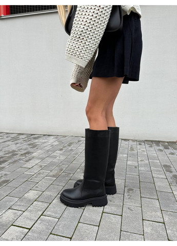Сезон – Зима. Розмір – 41. Колір: чорний Матеріал верху: натуральна шкіра Всередині: напівшерсть Матеріал підошви: поліуретан Висота без підошви: 40,5см Підошва: 1,5-3,5см Об'єм гомілки/верху: 36-37р-38/42см; 38-39р-39/43см; 40-41р-40/44см Устілка: 36-23,5см 37-24см 38-24,5см 39-25см 40-25,5-26см 41-26,5см, звужена шкарпетка