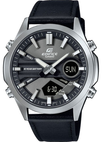 Тип механізму: Кварцові; Виробник: Casio; Стать: Чоловічі; Тип індикації: Аналогові та Електронні; Функції: Індикація дати, Будильник, Секундомір, Другий час, Таймер, Індикація дня тижня, Індикація місяця, Блокнот, Автоматичний календар; Стиль: Спортивні; Гарантія: 24; Артикул: Efv-C120L-8Aef; Скло: Мінеральне; Браслет / Ремінець: Ремінець; Матеріал браслета/ремінця: Шкіряний;