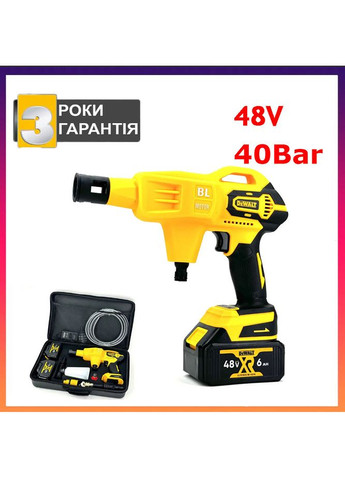 Акумуляторна ручна мийка DeWalt DXPW028N (48V 6Ah 40 бар) Безщіткова АКБ мойка Девольт високого тиску Акумуляторна ручна мийка DeWalt DCPW1012B з цифровим дисплеєм, на якому регулюються 3 режими роботи (Eco, Wash, Strong) - це потужна та надійна мийка для ефективного очищення поверхонь в умовах, де немає доступу до мережі електроживлення. Забезпечена потужним 36-вольтним акумулятором ємністю 6 А·год, ця портативна мийка забезпечує високу продуктивність і тривалий період автономної роботи. З тиском до 40 барів і продуктивністю 6 літрів на хвилину вона ефективно видаляє бруд, пил та інші забруднення з різних поверхонь, як-от автомобілі, велосипеди, садові меблі та навіть фасади будівель. !! Гарантія 3 роки! Основні переваги: Потужність і ефективність: Тиск 40 барів гарантує глибоке та якісне очищення навіть найскладніших забруднень. Ідеально підходить для догляду за автомобілями, велосипедами, терасами, вікнами, садовими меблями, доріжками та багатьма іншими поверхнями. Мобільність і автономність: Акумуляторна технологія 36 У звільняє від потреби в розетці або стаціонарному водопроводі. Це ідеальний вибір для використання у віддалених місцях, на дачі або під час подорожей. Цифровий дисплей і зручне керування: Інтегрований цифровий дисплей і кнопки регулювання режимів дають змогу легко налаштувати мийку під поточні завдання. Три режими роботи: Режими Eco, Wash и Strong дають змогу підібрати оптимальний рівень тиску для різних завдань — від делікатного очищення до інтенсивного. Сучасний безщітковий двигун: Безщітковий двигун забезпечує високу продуктивність, довговічність і мінімальний рівень шуму. Технологія знижує знос і збільшує термін експлуатації пристрою. Зручність у використанні: Легка вага й ергономічний дизайн спрощують роботу навіть для новачків. Мийка швидко збирається й готова до використання за лічені секунди. Економне споживання води: Мийка дає змогу під'єднати воду з будь-якого джерела — відра, бочки або озера, завдяки функції самовсмоктування. Це робить її не тільки мобільною, але й ощадливою в витраті води. Акумулятори високої ємності: Змінні літій-іонні акумулятори на 36 В 6 А/год забезпечують довгу роботу без підзаряджання. Одного повного заряджання досить для виконання безлічі завдань із прибирання. Різноманітність насадок: Комплект із 3 насадок дає змогу регулювати кут і форму струменя для різних завдань — від дбайливого очищення до інтенсивного видалення бруду. Набір насадок: 1. Насадка з режимами розпилення (0°, 15°, 25°, 40°): Ця багатофункціональна насадка дає змогу вибирати кут розпилення для різних завдань: • 0° — вузький потужний потік для очищення стійких забруднень на твердих поверхнях, як-от бетон або метал. • 15° — помірний кут для ефективного видалення бруду з автомобілів, велосипедів і садового інвентарю. • 25° — універсальний потік для чищення меблів, вікон, терас і дерев'яних поверхонь. • 40° — широкий делікатний потік, що підходить для чутливих поверхонь, як-от скло та лакофарбові покриття. 2. Насадка для піни (піногенератор): Ідеально підходить для нанесення мийного засобу у формі густої піни. • Ефективно розм'якшує бруд, полегшуючи подальше миття. • Підходить для автомобілів, фасадів будівель, вікон та іншої брудної поверхні. • Проста у використанні: наповнюєте місткість мийним засобом, під'єднуєте, і готово! 3. Універсальний п