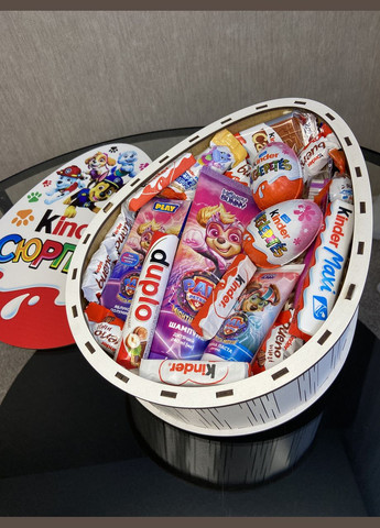Кіндер Бокс “Рожеві Поні для Принцеси” 25×16×8 см Подаруйте маленькій принцесі справжню казку з чарівним Кіндер Боксом “Рожеві Поні” Яскравий бокс у формі яйця, наповнений улюбленими ласощами Kinder і Nutella, стане найсолодшим подарунком, який викликає щирі посмішки та радість! Усередині боксу: Kinder Surprise, 2 шт Kinder Joy, 1 шт Kinder Bueno mini, 1 шт Kinder Chocolate, 1 шт Kinder Country, 1 шт Kinder Happy Hippo, 1 шт шоколадно-горіхова паста Nutella & Go з хрусткими паличками Raffaello Молочний шоколад зі смаком капучіно Fondre, 2 шт. Kinder Cards, 1 шт Kinder Schoko Bons, 5 шт Ідеально підходить: • Як подарунок для дівчинки на День народження, Миколая, Новий рік, Великдень або просто без приводу • Для створення святкового настрою та магії дитинства • Готовий до вручення — гарно оформлений, виглядає яскраво й дорого Характеристики: • Розмір боксу: 25×19×8 см • Упаковка: дерев’яний бокс у формі яйця з рожевою кришкою “Kinder Сюрприз” • Наповнення: оригінальні солодощі Kinder, Ferrero, Nutella Подаруйте своїй донечці, племінниці чи хрещениці справжню казкову радість! Кіндер Бокс “Рожеві Поні для Принцеси” — це солодке диво, яке завжди викликає “Вау!”