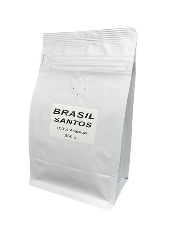 Даний сорт кави має горіхово-шоколадним відтінком, післясмак схожий зі смаком горіхової пащі. Чудове поєднання ціни та якості. Кава в зернах Арабіка Бразилія Сантос - широко відомий сорт кави на світовому ринку. Назва походить від назви порту Сантус на південному сході Бразилії.