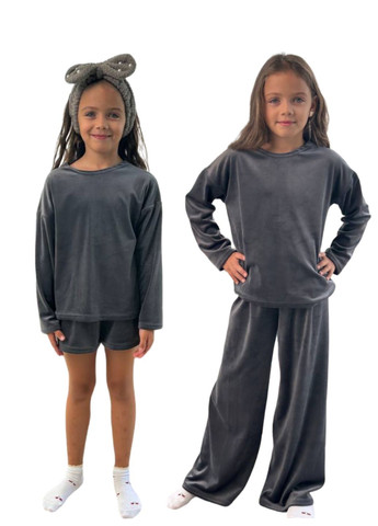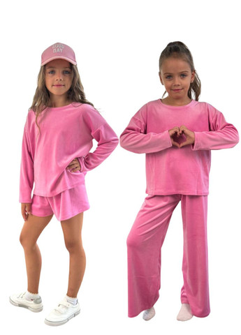 Наш “3 в 1” комплект із плюшевого велюру діти майже не знімають бо він однаково ідеальний і як піжама для сну, і як домашній костюм або у садок, і навіть як стильний образ для танців.