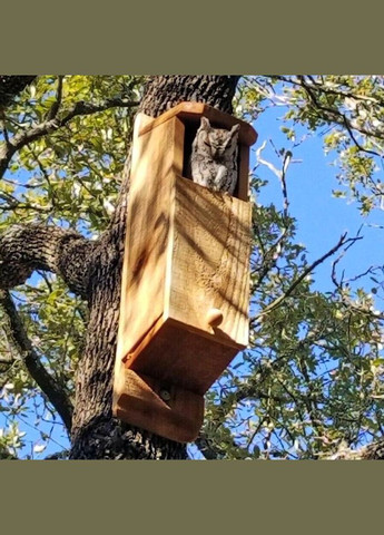 Дерев’яний будиночок для сови. Такий будиночок для сови або для філіна не займе багато місця, зате ви зможете насолоджуватися присутністю у себе на дачі дуже симпатичних і корисних сусідів. Навіщо залучати сов на ділянку, адже для весняних пташиних пісень досить побудувати просту шпаківню, тим більше, що сови - нічні птахи і пісень не співають. Але є вагомі причини встановити будиночок для філіна у себе на ділянці. По - перше сови, дуже симпатичні створіння. По - друге, сови - кращий спосіб позбутися від гризунів на ділянці, адже харчуються сови в основному мишами полівками, тож, завівши сову на дачі, ви отримаєте спосіб позбавлення від мишей. Розміри зовнішні: глибина - 22см, ширина - 20см, висота - 60см. Покриття: рідкий віск. Матеріал: дерево. Виріб ручної роботи та виготовлений виключно з натуральних, екологічно чистих матеріалів.