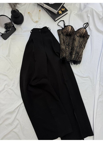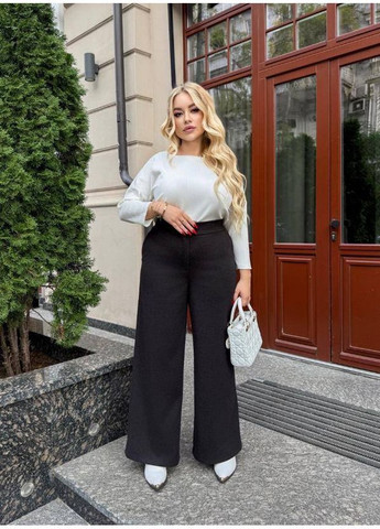 Штани-палаццо мають високу посадку на еластичній резинці та куліски знизу, завдяки яким їх можна носити як прямі або перетворювати на джогери. Модель підходить для активного щоденного носіння, прогулянок, поїздок та відпочинку. Склад тканини — 90% котон, 10% поліестер. Костюм повномірний, з вільною посадкою, чудово підходить на осінь, зиму та прохолодну весну.