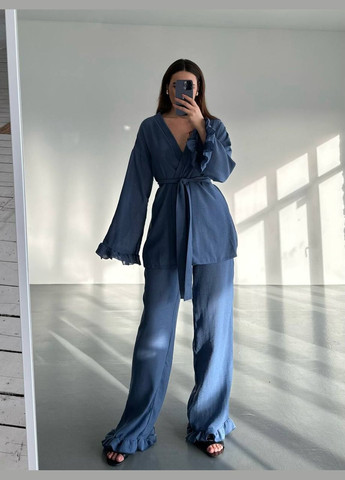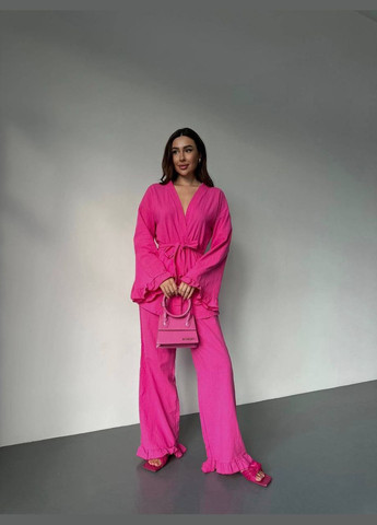 Широкі трендові брюки з високою талією та запрасованими стрілками – це справжня знахідка, яка візуально подовжить ваші ноги та зробить силует стрункішим. Спереду на рівні стегон розташовані зустрічні складки, які не лише додають елегантності, але й ефективно корегують фігуру. Універсальність цих брюк вражає: вони легко трансформуються з елегантного офісного варіанту у стильний вечірній образ – достатньо лише змінити строгу блузку на ефектний мінітоп. Виготовлені з якісної костюмної тканини "Лагуна", що поєднує віскозу, поліестер та бавовну, ці брюки чудово тримають форму та забезпечують комфорт протягом усього дня. Їхній актуальний крій та висока посадка підкреслять вашу індивідуальність та додадуть впевненості у будь-якій ситуації. Характеристики: Матеріал брюк: Костюмна тканина "Лагуна" (34% віскоза, 56% поліестер, 10% бавовна) Крій: Широкі, прямі Посадка: Висока талія Деталі: Запрасовані стрілки, зустрічні складки спереду на рівні стегон Універсальність: Підходять для офісного та вечірнього образів Властивості: Візуально подовжують ноги, корегують фігуру, добре тримають форму, стильні Стиль: Трендовий, класичний, офісний, вечірній, повсякденний