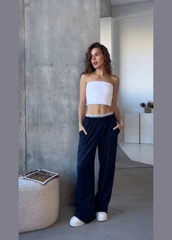Жіночі стильні штани палац з легким джинсом. Висока посадка на резинці. з боків кишені хулігани.