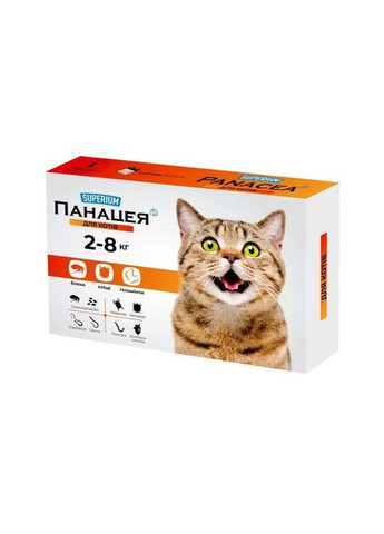 Протипаразитарні таблетки Панацея від українського виробника - це високоефективний засіб для профілактики та лікування зовнішніх та внутрішніх паразитів у котів. Виготовлені з натуральних компонентів, вони забезпечують безпеку та комфорт домашньому улюбленцю. Таблетки містять широкий спектр активних інгредієнтів, які забезпечують надійний захист від кліщів, бліх, глистів, та інших паразитів. Препарат діє на всіх стадіях життєвого циклу паразитів, забезпечуючи повну елімінацію інфекції. Таблетки мають приємний смак та запах, що сприяє легкості їх вживання. Вони також не містять агресивних хімічних речовин, що дозволяє їх використовувати як профілактичний засіб без шкоди на здоров'я пухнастого улюбленця. Застосування таблеток просте і зручне. Для профілактики рекомендується вживати їх раз на місяць, а при наявності паразитів - відповідно до рекомендацій ветеринарного лікаря. Для зручності, засіб доступний у різних дозах, залежно від ваги та розміру кота. Переваги: Ефективність: таблетки борються з зовнішніми та внутрішніми паразитами, такими як кліщі, блохи, плоскі та круглі черви; Простота застосування: таблетки можна додати до їжі кота або запхати в рот, без необхідності використовувати спеціальні засоби; Безпека: таблетки виготовлені з натуральних інгредієнтів і не мають шкідливих хімічних речовин; Довготривала дія: після вживання таблеток їх ефект триває до 30 днів, що дозволяє забезпечити довготривалий захист від паразитів; Перевага перед іншими методами: таблетки є більш ефективним і дешевшим методом боротьби з паразитами, ніж спреї та інші засоби; Універсальність: таблетки можна використовувати як для профілактики, так і для лікування вже наявних паразитів. Склад: 100 мг препарату містить діючі речовини: люфенурон-10,0 мг; нітенпірам - 3,0 мг; моксидектин – 0,3 мг; празиквантел - 5,0 мг. Допоміжні речовини: ароматизатор штучний РС-0125, мікрокристалічна целюлоза, гідроксипропілцелюлоза, кроскармелоза натрію, колоїдний кремнієвий ангідрид, стеарат магнію. Фармакологічні властивості: ATC Vet QP53, ектопаразитициди, інсектициди і репеленти (QP53BX02, нітенпірам, QP53CB01, люфенурон), QP52, антигельмінтні ветеринарні препарати, інші (QP52AA51 празиквантел, комбінації). СУПЕРІУМ Панацея протипаразитарні таблетки для котів паразитицидний препарат у вигляді таблеток, що застосовується для профілактики та лікування котів при зовнішніх паразитах (членистоногих: блохах, кліщах тощо), а також при внутрішніх паразитах (нематодах, цестодах). Люфенурон (з'єднання групи бензоілфенілсечовини) — це інсектицид широкого спектру дії, особливо активний проти бліх видів Ctenocephalides spp., Pulex irritans та володіє підвищеною ларвоцидною і контактною овоцидною активністю. Механізм дії полягає у блокуванні синтезу хітину, що є основним компонентом екзоскелетів комах, тому личинки при линьці не можуть сформувати нову кутикулу і гинуть. Потрапляючи в організм комах з кров'ю тварини, потім в їх яйця, люфенурон блокує процес формування хітину, личинки гинуть в результаті порушення процесів формування кутикули і, таким чином, запобігає появі наступного покоління бліх. Хоча він не впливає на дорослих бліх, він запобігає розвитку проміжних стадій життєвого циклу бліх (яєць, личинок, лялечок). Нітенпірам - це інсектицид, що належить до класу неонікотиноїдів. Механізм дії поля