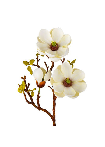 Висота - 77 см. Штучна магнолія - це реалістична імітація гілки живої магнолії, створена зі штучних матеріалів - фоамірану та пластику. Вона має деталізовану структуру, що імітує справжні гілочки, листя та квіти магнолії. Оригінального кольору, ця штучна гілка використовується як декоративний елемент у флористиці, дизайні інтер'єру або при оздобленні різноманітних заходів, додаючи натурального шарму та елегантності до простору. Elisey