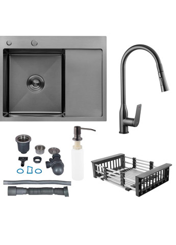 Комплект кухонної мийки - повноцінне рішення для кухні високої якості, що ідеально поєднується за кольорами та матеріалами. Купівля готового комплекту – це набагато простіше, швидше та дешевше, ніж купувати окремо змішувач, мийку та дозатор. Це насамперед: 1. Гарний дизайн та ідеальна сумісність між мийкою та змішувачем. 2. Економія грошей та часу.