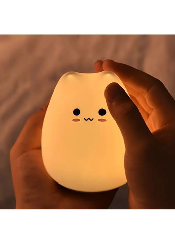 Нічний світильник силіконовий Котик 7 режимів нічник силіконовий Котик LED Sleep Lamp Компактний LED світильник у формі милого котика, зручно використовувати як настільний світильник і нічник для кімнати. Неймовірно м'який матеріал і красиве тепле світло світіння нічника можна оцінити з першого ввімкнення й дотику до нього. LED-нічник — Лампа Котик має подвійний режим світла: теплий білий режим освітлення і 7-колірний режим. Найцікавіше в цьому світильнику те, що вона реагує на дотик і в такий спосіб змінює свій колір. Кишеньковий розмір, милий дизайн і екологічний матеріал роблять цей нічник ідеальним для спальні, робочого кабінету та особливо для дитячої кімнати. Інструкції з використання: 1. Увімкніть кнопку живлення внизу та лампа ввімкнеться в режимі звичайного м'якого білого світла. 2. Торкніться (натисніть) поверхню лампи, щоб змінити режим світіння і перемкнутися на автоматичний 7-колірний миготливий режим. 3. Натисніть ще раз, щоб увімкнути режим очікування. Натисніть на нижню кнопку живлення, щоб погасити світло. Заряджається світлодіодний нічник через кабель USB. Під час заряджання індикатор загоряється червоним і гасає за повного заряджання. Час заряджання становить приблизно 3 години. Особливості LED-нічника — лампи Котик: • Зроблений із м'якого та приємного на дотик силікону, який можна мити та прати. • Чутливий датчик керування дає змогу контролювати світло за бажанням. • Зручність: м'яка поверхня не шкодить дітям. • Нічник заряджається кабель USB. • Інноваційна чудова нічна лампа має режим теплого природного світла та 7-колірний світловий режим. Завдяки цьому створюється розслаблювальна та комфортна атмосфера в кімнаті. • Світлодіодна лампочка не перегоряє, тому довго слугуватиме. • Оригінальний подарунок для дитини. Комплектація 1 шт. — світлодіодний нічник-лампа Котик. 1 шт. - USB кабель. 1 шт. - інструкція (англійською мовою) Технічна характеристика: Тип лампи: світлодіодний світильник КОТ Матеріал: ABS + Силікон Потужність: 0,4 Вт Вхід: 5 В / 400 мА·год Вихід: 2 В Зарядний порт: USB Термін служби: 50000 годин Колір: білий Розмір: 13,5 * 10 cm