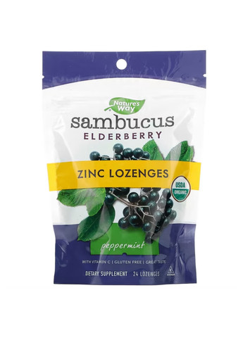 Сертифікат USDA Organic Кошерний продукт З вітаміном C Без глютену Чудовий смак! Дієтична добавка Органічний склад підтверджено Quality Assurance International (QAI) Чорна бузина Протягом століть ягоди чорної бузини (Sambucus nigra L.) використовувалися в Європі як засіб для зміцнення імунітету в зимовий час. Стандартизований екстракт Виготовлено на основі нашого унікального екстракту чорної бузини з повним спектром поживних речовин, добутого з унікальної суміші різних видів чорної бузини, природно багатшої на біоактивні флаваноїди Flavonoid BioActives®. М’яка екстракція без застосування розчинників забезпечує максимальну ефективність флавоноїдів. Суміш для підтримки імунітету потрійної дії Кожен льодяник містить 12,5 мг екстракту чорної бузини. Льодяники також є чудовим джерелом цинку (5 мг) та вітаміну С (90 мг) Органічний склад сертифіковано Продукт виготовлено з органічної чорної бузини й підсолоджено органічним тапіоковим сиропом та органічним тростинним цукром. Рекомендації із застосування Дайте льодянику повільно розчинитися в роті. Приймати за потреби по 1 льодянику до 4 разів на день. Дітям від 5 років приймати за потреби по 1 льодянику до 1–2 рази на день. Перед застосуванням під час вагітності, грудного вигодовування або прийому препаратів потрібно проконсультуватися з медичним працівником. Інші інгредієнти Органічний тростинний цукор, органічний тапіоковий сироп, вода, натуральні ароматизатори, органічна соняшникова олія, органічна перцева м'ята. Не містить глютену. Без штучних консервантів, ароматизаторів, і барвників.