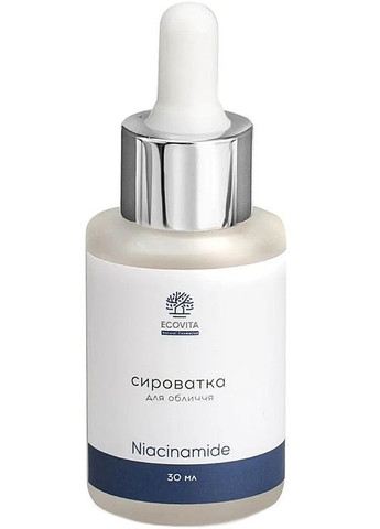 Екологічно чиста формула для сяючої шкіри! Наша сироватка з ніацинамідом – це справжній еліксир. Сировотка глибоко зволожує, захищає від ультрафіолету, регулює вироблення себуму і вирівнює тон шкіри. Відчуйте себе впевнено з природним сяйвом! Основні властивості: - антиоксидантна дія - покращує природний метаболізм - уповільнює появу ознак старіння; - відновлює шкірний покрив; - запобігає подразненню і сухості шкіри; - освіжає тон обличчя; Ключові компоненти: Ніацинамід – водорозчинна форма вітаміну В3, необхідної поживної речовини, яка приймає участь у багатьох клітинних процесах шкіри. Цей ефективний і перевірений інгредієнт стимулює синтез природного колагену і керамідів, має ряд протизапальних, регенеративних і антиоксидантних властивостей. Ніацинамід заспокоює шкіру і допомагає їй швидше відновитися. Фукогель - це полісахарид. Білки беруть активну участь в основних функціях шкіри - в тому числі і в її захисній функції. Так, білок сиртуїн-1 (SIRT1) відіграє важливу роль в боротьбі проти старіння і також відомий як "білок молодості" або "білок довголіття". Він виконує істотну роль в фізіологічних процесах, включаючи репарацію ДНК, стійкість до окислювального стресу, загибель клітин. Сиртуїн-1 сприяє оновленню клітин. Вік і зовнішні агресивні фактори негативно впливають на його синтез, прискорюючи старіння. А фукогель здатний надавати зворотну реакцію і сприяти його синтезу. Алое вера багатий корисними речовинами, містить вітаміни А, С, Е, а також вітаміни групи В і фолієву кислоту. У ньому 20 незамінних кислот з 22 існуючих, а також фітостерини і протеїни, калій, кальцій, магній, цинк, мідь, залізо. Алое віра виступає найсильнішим загоюючим активом. Він здатний глибоко зволожувати і живити шкіру. Покращує еластичність шкіри, тонізує, сприяє регенерації і омолодженню шкіри.Звужує пори, знімає роздратування і дезінфікує шкіру, заспокоює шкіру після сонячних ванн. Знімає свербіж і запалення. Сприяє виробленню колагену, еластину і гіалуронової кислоти. Л-аргінін - потужний антиоксидант, він здатний нейтралізувати вільні радикали, які ушкоджують клітини шкіри і прискорюють процеси старіння. Активний компонент здатний значно підвищувати рівень зволоженості шкіри, це пов'язано з тим, що амінокислота допомагає синтезувати компоненти НУФ - сечовину, глікозаміноглікани, а також холестерин і цераміди. Таким чином, Л-аргінін стає компонентом, який значно зміцнює роговий шар і захищає його від впливу навколишнього середовища. Л-аргінін здатний значно збільшувати вироблення колагену. Після того, як ця амінокислота потрапляє в шкіру, вона перетворюється в L-пролін, який в свою чергу є будівельним матеріалом для колагенових волокон. Вироблення колагену дозволяє зменшити ознаки старіння шкіри, повернути їй еластичність, до того ж посилений синтез колагену сприяє швидкому загоєнню ран і розгладженню рубців. Зміцнює судинну сітку, захищає шкіру від ультрафіолетового випромінювання, прискорює загоєння пошкоджень шкіри і шрамів. Протистоїть фотостарінню шкіри і гіперпігментації, сприяє освітленню, звужує пори, нормалізує вироблення себума, вирівнює мікрорельєф шкіри.