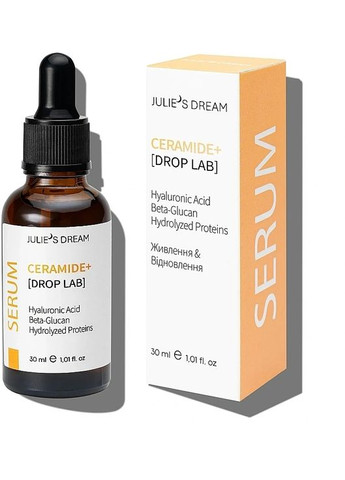 Serum Ceramide+ [DROP LAB] – це високоефективна сироватка, створена для відновлення природного захисного бар’єра шкіри та підтримки її гідратації на клітинному рівні. Завдяки ретельно підібраній формулі вона допомагає утримувати вологу, зменшує подразнення та сухість, забезпечуючи шкірі комфорт, еластичність і стійкість до зовнішніх факторів. Ефекти від використання: - Відновлення захисного бар’єра шкіри та її зволоження. - Зменшення сухості, стягнутості та подразнень. - Покращення текстури шкіри, її м’якості та еластичності. - Захист від зовнішніх агресорів, що спричиняють передчасне старіння. Активні компоненти: Кераміди – відновлюють бар’єрну функцію шкіри, утримують вологу та зміцнюють її структуру. Гіалуронова кислота – інтенсивно зволожує, допомагаючи шкірі залишатися еластичною та гладкою. Екстракт шавлії лікарської та соняшника – заспокоюють шкіру, зменшують подразнення та надають здорового вигляду. Гідролізовані білки та бета-глюкан – підтримують пружність і забезпечують антиоксидантний захист. Олії бергамоту, какао та герані – насичують шкіру поживними речовинами, надаючи їй сяйва та енергії.