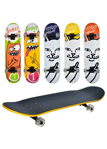 Скейтборд дитячий Mini SK-4932 – для активного способу життя! Призначений для катання по рівних твердих поверхнях, а також для виконання різних трюків. Скейтбординг - дуже весела та популярна розвага для дітей шкільного віку. Популярність цього виду спорту не стає меншою вже кілька десятків років, і катання на дошці у всіх асоціюється з духом молодості та свободи. Це захоплення багатьох хлопчаків і дівчаток, отже, якщо Ваша дитина займеться цим видом фізичної активності, то обов'язково знайде собі багато друзів-ровесників зі схожими інтересами. Також скейти підходять і для дорослих. Якщо ви тільки опановуєте науку катання на скейті, не варто відразу купувати дорогу модель. Тому що надалі вам все одно доведеться міняти дошку, підбираючи її під нові навички. Скейтбординг також приносить чимало користі, адже воно вчить тримати рівновагу, покращує роботу вестибулярного апарату, координацію рухів, зміцнює м'язи та суглоби ніг. Скейтборд призначений для катання по рівних твердих поверхнях, а також для виконання різних трюків. Призначення: призначене для катання та виконання трюків скейтбордистами. Матеріал: поліуретан, деревина. Габаритні розміри: 60 x 15 x 1,2 см Тип: Скейтборди. Матеріал: дерево. Матеріал коліс: ПВХ. Розмір деки: 60 "х 15". Підшипники: 608 ZB. Максимальне навантаження 80 кг.