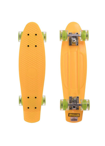 Тип: пенні борд з колесами, що світяться. Матеріал деки: пластик. Матеріал коліс: поліуретан. Розмір: 56х15 см. Тип підшипників: АВЕС-7. Максимальна вага користувача: 80 кг. Колір: жовтий-салатовий. Призначення: для повсякденного катання. Пенні борд — вид скейтборду з вузькою декою. Такий борд підійде для новачків, оскільки на ньому простіше утримувати баланс. Досвідчені райдери можуть використовувати пенні борд для повсякденного катання містом. Дека виготовлена із пластику. Поверхня дошки не ковзає. Колеса виготовлені з поліуретану, який гасить вібрацію під час їзди. Підшипники АВЕС-7 виготовлені з високою точністю, вони не шумлять і довше обертаються. Колеса пенні борда світяться під час їзди. Переваги пенні борда: Яскравий дизайн. Колеса, що світяться. Точні підшипники. Підходить для райдерів-початківців. Характеристики Вид Пенні борди Розмір деки56 х 15см Вага користувача80 кг Підшипники ABEC 7 Матеріал деки Пластик (PC) Матеріал коліс Поліуретан (PU) Країна виробник Китай