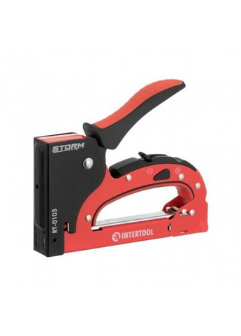 Степлер будівельний RT-0103 має повністю металевий корпус. Ручка степлера покрита приємною на дотик додатковою гумовою вставкою. Для комфортної та невибагливої роботи така накладка просто необхідна. Степлер RT-0103 чудово підходить для напівпрофесійних робіт. Цьому свідчить досить високий термін експлуатації, не менш ніж 50000 ударів. Тут передбачена система контролю залишку витратного матеріалу. Вам не потрібно тепер періодично витягувати пристрій введення скоб для перевірки їхньої наявності. Тепер є спеціальне віконце, через яке видно залишок витратного матеріалу. Зробився також і регулятор сили удару. Тепер це горизонтально розміщене коліщатко, яке розташоване на корпусі під ручкою. Особливість регулятора полягає в точнішому регулюванні сили удару за мінімальних навантажень на руки користувача. Степлер RT-0103 можна використовувати в будівництві, але найчастіше степлери застосовують у меблевому виробництві. Найзручніше, звичайно ж, використовувати дерев'яні заготовки та конструкції для роботи зі степлером. Ця модель степлера була зроблена на одному з провідних заводів із виробництва степлерів і канцелярських товарів, який є в Індії. TM INTERTOOL завжди дбає про якість виробленої продукції та з кожним роком удосконалює її.