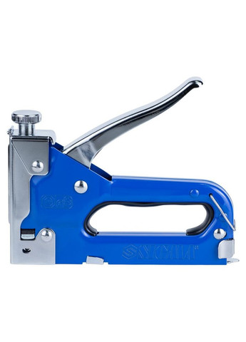 Будівельний степлер (текер) — незамінна річ в арсеналі інструмента в будь-якого майстра. З його допомогою оббивають меблі, драпірують, прикріплюють килим до підлоги, виробляють монтаж проводини та ще безліч інших робіт. Особливості Легка, надійна конструкція з металевою ручкою Ресорний механізм гарантує тривалий термін експлуатації Швидке завантаження скоб 2 режими роботи (max/min потужність для щільніших і м'якших матеріалів) Головна особливість цього степлера — у наявності ресорного механізму, за допомогою якого і забивання скоб. Він дає змогу докладати менше зусиль, водночас отримувати потужніший удар і знижену віддачу. Циліндричні пружини звичайного степлера швидко зношуються, на відміну від пластинчастих (рессорних) пружин, що гарантує тривалий термін експлуатації. Ресурс щонайменше 15 000 ударів. Механізм швидкого завантаження скоб позбавить довгих і незручних мук завантаження витратників, як у звичайному степлері. Конструкція з ударостійкого пластику робить степлер легким, не обтяжує Вашу руку, водночас не дає Вам втомлюватися під час тривалих робіт. Ви ніколи не натрете мозолі завдяки округлій формі металевої ручки, яка повторює природні вигини долоні та не руйнується, у разі максимально прикладених зусиль. 2 режими роботи дають змогу виставити необхідну силу забивання скоб у різні матеріали. Ви можете встановити максимальну або мінімальну силу удару, всього лише в одне клацання.