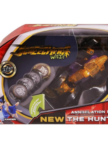 Screechers Wild! - це перші в історії іграшки-машинки, які роблять сальто на 360 градусів і трансформуються у фантастичну істоту прямо в повітрі. Варто такій машині зловити скричер-диск, як вона трансформується у величезного потужного скричера. Можете собі уявити? Зустрічайте новий сезон! Влаштовуйте неймовірні пригоди, видовищні бої та фантастичні гонки Кожен скричер трансформується в тварину з суперсилою, потрібно тільки запустити машинку, спрямовуючи її на магнітний диск, або навпаки запустити диск у машинку, при дотику з яким вона зробить перекид у повітрі і перетвориться на звіра. Для того, щоб трансформувати тварину назад, потрібно витягти диски та закріпити пружинку знизу машини, і Ви знову можете вступати у бій. Диск має гладку поверхню для бездоганного ковзання та гумову поверхню для фіксації на місці. Випробуйте свого скричера, боріться за скричер-паливо і отримайте перемогу. Машинка-трансформер має міцну конструкцію з надійними кріпленнями і виконана з високоякісного матеріалу. Хантер має найбільшу силу, волю і бойовий дух. Скричер Хантер трансформується у крутого дракона. Для цього захопіть перший диск, запустіть хутроанізм обертання та захопіть ще 3 диски, виконайте перекид на 360 °! У наборі входить: машинка 4 диски