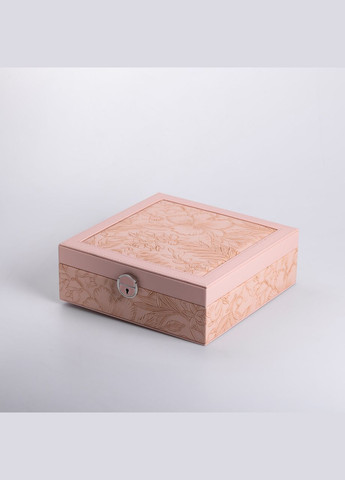 Стильна скринька для прикрас рожевого кольору. Форма - квадратна. Органайзер для зберігння біжутерії, на блискавці. Матеріал - кожзам. Розмір -9,5х9,5х4,5 см