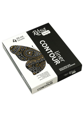 Універсальні акрилові контури ROSA Talent - це незамінний матеріал для рукоділля та декору, коли потрібно зробити орнамент, додати об'єму малюнку, створити ефект декоративних намистин та цілий точковий розпис. 20 кольорів та 5 різних ефектів для реалізації ваших задумів, а також 2 набори по 4шт в кожному.Контури класичних кольорів: Білий, Жовтий, Червоний, Зелений, Синій, Рожевий, Фіолетовий, Коричневий, Сірий, Чорний ідеально підходять для базового декору та створення чітких, виразних ліній.Контури з металевим ефектом: Золото, Срібло створюють яскраві, сяючі лінії, які імітують вигляд справжнього металу. Вони додають виробам стильного, розкішного вигляду, чудово підкреслюючи деталі й контрасти в дизайні.Перламутрові контури: Білий та Кремовий додадуть ніжного сяйва задекорованим виробам. Завдяки спеціальним пігментам контури створюють м’який блиск, який змінюється залежно від кута освітлення. Цей ефект ідеально підходить для декору, додаючи роботам елегантності та вишуканості. Мають просто неймовірний, стильний вигляд при нанесенні на чорну основу для декору.Контури з глітерами двох видів: Золото та Срібло, мають ефект іскристого сяйва завдяки вмісту дрібних глітерів. Вони чудово підійдуть для створення цікавих, святкових ефектів на листівках, запрошенях чи інших святкових аксесуарах.Контури з ефектом флуорисцентності: Жовтий, Зелений, Рожевий, Оранжевий мають високу концентрацію пігменту у фарбі, що забезпечує насичені, яскраві, чисті кольори після нанесення та високий рівень флуоресцентності. Вони ідеально підходять для створення ефектних декоративних елементів, що привертають увагу та виглядають динамічно в будь-якому освітленні.Мають особливо стильний, яскравий, контрастний вигляд при нанесенні на основу для декору чорного кольору. Комплектація наборів:• <>Класичні кольори (Білий, Чорний, Червоний, Синій) підходять для орнаментів та деталей, де важливий контраст і точність. • <>Металіки (Золото, Срібло, Білий, Чорний) ідеально підходять для створення ефекту блиску, акцентів та елегантних деталей у декорі. Універсальні контури ROSA Talent - ідеальний вибір для створення візерунків на різноманітних поверхнях: дерево, картон, скло, метал, тканина. Їх використовують у різних творчих техніках: декоруванні, скрапбукінгу, декупажі та інших видів рукоділля. За допомогою універсальних контурів створюють:- візерунки на кришках скриньок та шухлядах комодів;- кути в стаканах чи органайзерах для ручок;- декор на фоторамках;- орнаменти на кружках та вазах;- панно в техніці точкового розпису;- об'ємні візерунки альбомах та листівках. Універсальні контури — це акрил спеціальної ущільненої консистенції у тюбику з тонким носиком, яким можна малювати безпосередньо з туби, без використання додаткових інструментів. Завдяки вузькому носику нанесені лінії виходять об'ємними з однаковою товщиною та залишаються опуклими, не розтікаються після нанесення та висихання. Довгий тонкий носик не закриває роботу, яка виконується, можна бачити цілісний малюнок, а візерунки можна наносити навіть у важкодоступних місцях. Контури виготовлені на основі акрилових дисперсій та зберігають основні властивості акрилових фарб: не розмиваються водою після висихання; залишаються еластичним навіть після висихання, не тріскає при згинанні основи. При потребі а