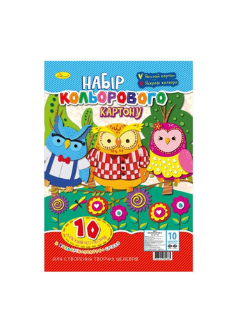 Формат/розмір: 200х295 мм Кількість аркушів: 10 Кількість кольорів: 8 аркушів стандартних кольорів(жовтий, фіолетовий, помаранчевий, чорний, рожевий, червоний, синій, блакитний)+1 золото+1 срібло Обкладинка та скріплення: обкладинка-вкладиш з крейдованого паперу, м’яка; пакування в поліпропіленовий пакет. Блок: картон підвищеної щільності 280г/м², 8 стандартних кольорів+1 золото+1 срібло.