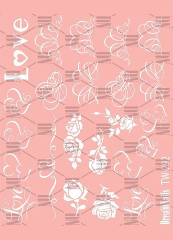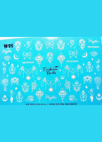 Білі зображення на прозорій основі для декорування нігтів. Кожен комплект містить мінімум 12 зображень (основні + запасні). Виконані на прозорій плівці.