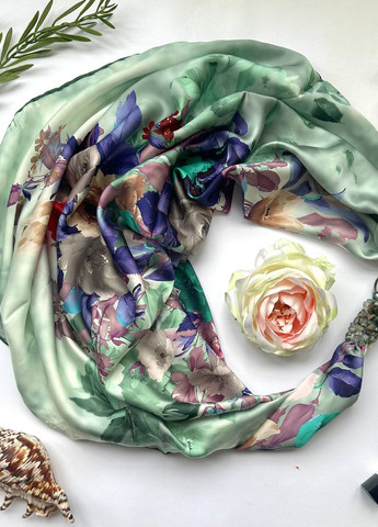 Дизайнерська шовкова хустка My Scarf "Смарагдовий сад" 90 на 90 см прикрашена яшмою.