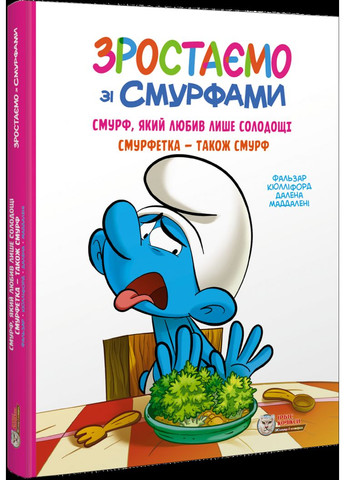 Про книгу: Смурф, який любив лише солодощі. Смурфетка — також смурф. Зростаємо зі смурфами Далеко-далеко звідси розташована чарівна країна, де в селищі Смурфидолі, біля річки Смурфки мешкають дивовижні маленькі істоти — смурфики. В їхньому селищі панують мир і злагода, адже смурфики, хоч і мають кожен свої відмінності, чудово доповнюють один одного. Смурф, який любив лише солодощі. Зростаємо зі смурфами Це історія смурфа Ласуна, який нехтував корисні страви, хай би як чудово їх готували. Бо найбільше йому смакували солодощі — аж настільки, що він не міг стриматись і з’їдав не лише свій десерт, аж доки його любов до смаколиків не спричинила велику небезпеку для всього селища. Смурфетка — також смурф. Зростаємо зі смурфами До Смурфетки у Смурфидолі ставляться особливо: всі з нею чемні та приязні. Навіть Жартун не пропонує їй свої вибухові подарунки. І всі дарують Смурфетці квіти, багато квітів. Але це зовсім не те, про що вона насправді мріє, адже її мрія — бути, як усі, бавитися з усіма і бути корисною для інших смурфів. Розміри: 210×160 мм