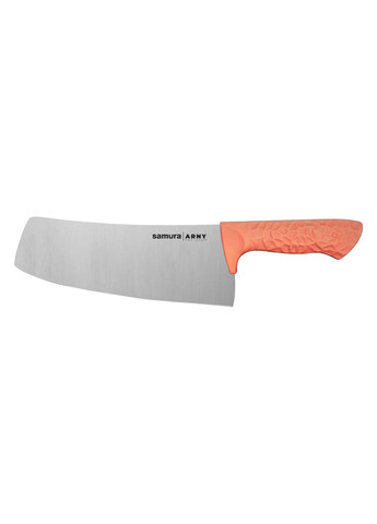 Характеристики Призначення: Кухонна сокира Модерн Виробник: Samura Серія: ARNY Артикул: SNY-0041BC Матеріал леза: AUS-8 Твердість леза (HRC): 58 Кількість шарів сталі: 1 Довжина леза (мм): 209 Довжина (мм): 337 Ширина (мм): 82 Товщина (мм): 22 Колір: помаранчевий