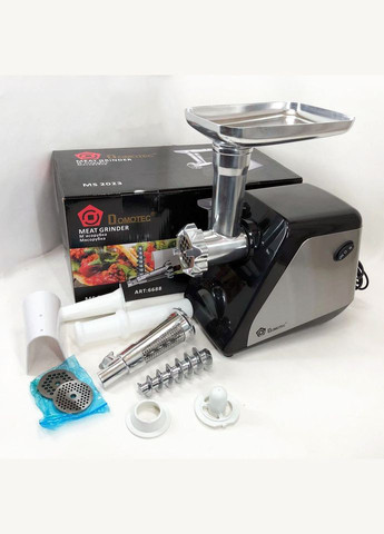 Електрична м’ясорубка Domotec MS-2023 2800W призначена для виготовлення фаршу з м’яса, риби, грибів, нарізки овочів та фруктів, профілювання пісочного та пельменного тіста. > Електром’ясорубка шнекового типу має функцію реверс, що запобігає ущільненню продуктів усередині м’ясорубки та забезпечує якісне подрібнення. Корпус виготовлений з нержавіючої сталі та ударостійкого пластику. Є прогумовані антиковзні ніжки. В комплектацію входять набір решіток для приготування фаршу, насадки для ковбас та кеббе, пластиковий штовхач, насадка для соку. Характеристики: Тип: Електрична м’ясорубка; Потужність: 2800 Вт; Система реверсу; Захист двигуна від перезавантаження; Міцний металевий шнек; Гумові ніжки для додаткової стійкості; 3 насадки з отвором різного діаметру: 3 мм, 5 мм, 7 мм; Корпус виконаний з нержавіючої сталі; Низький рівень шуму. Комплектація: М’ясорубка; Набір насадок для ковбас та кебе; Пластиковий штовхач; Набір сіток для фаршу – 3 мм, 5 мм, 7 мм; Насадка для соку; Упаковка.