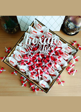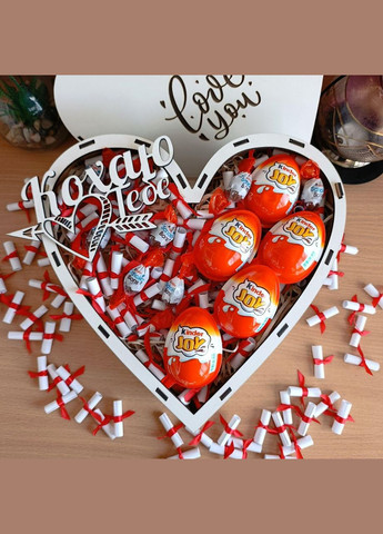 Скажіть "Так" чарівності та ніжності з нашими подарунковими наборами, наповненими солодкими задоволеннями, які точно підкорять серця ваших близьких! День закоханих, 8 Марта, День народження, Новий рік, І багато інших особливих моментів у житті! В склад входить: - 101 причина чому я тебе кохаю - Цукерки Schoko Bon’s 8 шт - Kinder JOY 5 шт - Наповнювач — стружка - Топер на вибір 🎁 Розмір коробочки: 28*27*8 см Наші подарунки - найкращий спосіб висловити свої почуття До складу боксу входять кіндери поточних серій, які випускаються на зараз.