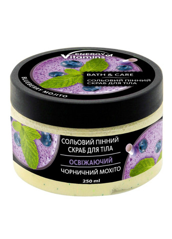 Соляний пінний скраб для тіла «Чорничний мохіто» від Energy of Vitamins розроблений на основі мінеральної солі і містить натуральну олію кісточок чорної смородини та натуральний екстракт перцевої м'яти. Догляд за тілом із зволожуючим соляним пінним скрабом для тіла «Чорничний мохіто», перетворюється на справжній сеанс SPA прямо у вас удома! Сольовий пінний скраб від Energy of Vitamins дбайливо очищає шкіру від забруднень, делікатно відлущуючи омертвілі частинки шкіри. Дія кристалів солі спрямована на оновлення шкіри і стимуляцію кровообігу, у результаті чого шкіра стає гладенькою і шовковистою. Склад скрабу збагачений натуральною олією кісточок чорної смородини, тому засіб забезпечує шкіру природними антиоксидантами, вітамінами, жирними кислотами і мінеральними речовинами. А екстракт м'яти перцевої, що також входить до складу, покращить колір шкіри, зробити її більш пружною і подарує чудовий свіжий аромат, який заряджає позитивом. Час застосування: універсальнийТип шкіри: всі типиВік: 18+Стать: жіночаОб'єм: 250 mlВиробник: Альянс краси (Україна)Виготовлено в: Україна