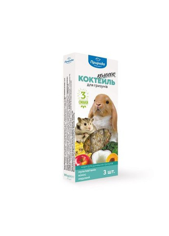 Продукти бджільництва сприяють підвищенню імунітету, стимулюють обмін речовин в організмі, активність гризунів. Оптимальна суміш різноманітних зернових культур, фруктів і овочів - необхідна сукупність рослинних протеїнів і вуглеводів, а також вітамінів і пектинових речовин - важлива мультивітамінна складова раціону гризунів. При вживанні такого корму травлення гризуна відповідає природним умовам. Стружка кокоса завдяки розвиненій поверхні має високу адсорбційну активність, яка сприяє виведенню з кишечника токсинів і інших продуктів діяльності організму. Містить значну кількість незамінних жирних кислот, які мають антивірусну програму й антибактеріальну дію. Склад: овес, ячмінь, пшениця, насіння соняшнику, сафлор, кокосова стружка, горохова крупа, пшоно Добавки: питна вода, борошно пшеничне, натуральний харчовий барвник